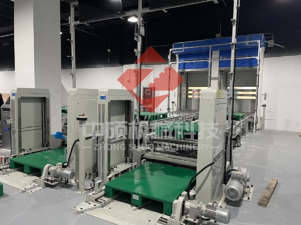 全自動托盤輥筒輸送線自動提升拆碼垛客戶現(xiàn)場實拍